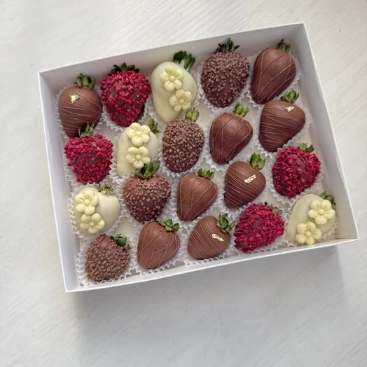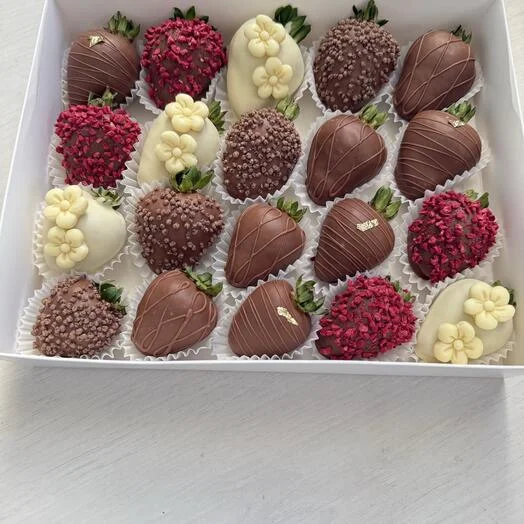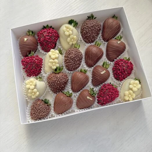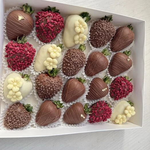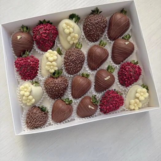 Премиальный десерт из свежей отборной клубники, покрытой настоящим бельгийским шоколадом Callebaut — это воплощение изысканного вкуса и элегантности.