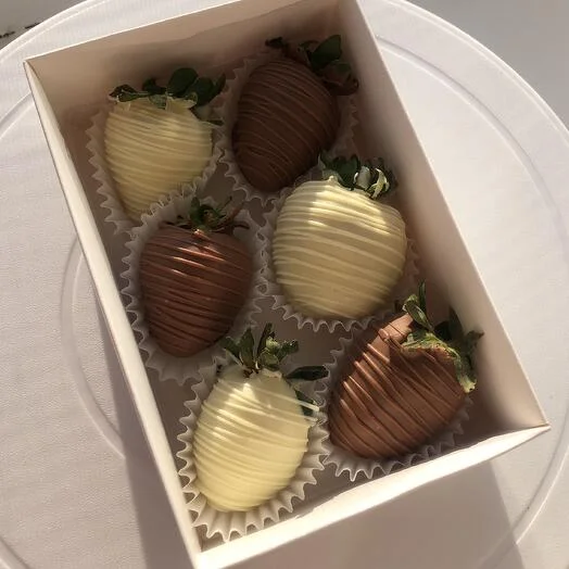 Спелая, отборная клубника в нежном, бельгийском шоколаде - изысканный подарок на любое торжество, будь то 8 марта, день рождения, 14 февраля, Новый год, помолвка, девичник, свадьба, День Святого Валентина, 1 сентября, День учителя, день мамы, юбилей.
