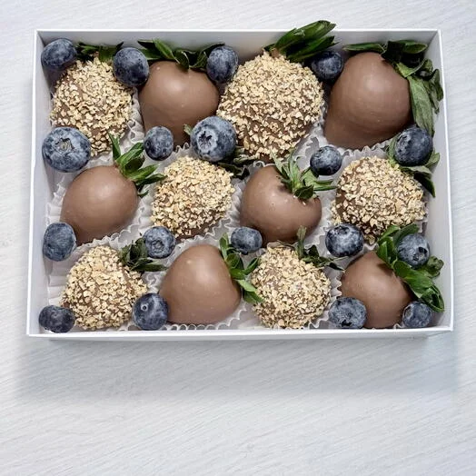 Клубника в шоколаде с вафельной крошкой и свежей голубикой
