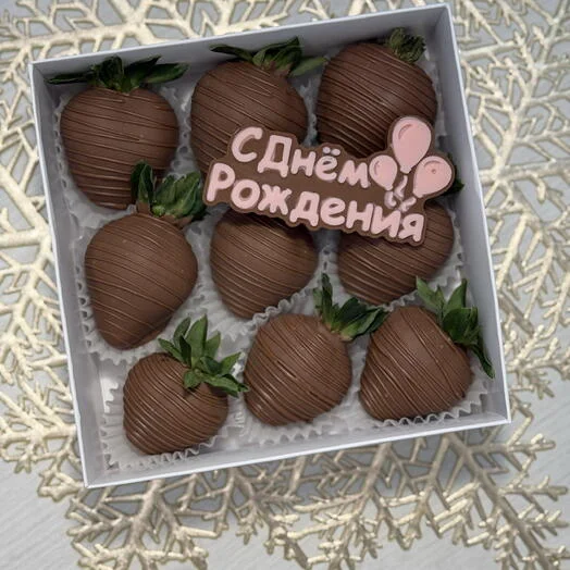 Этот изысканный набор из 9 клубничек в молочном бельгийском шоколаде станет идеальным подарком или просто комплиментом в качестве знака внимания.