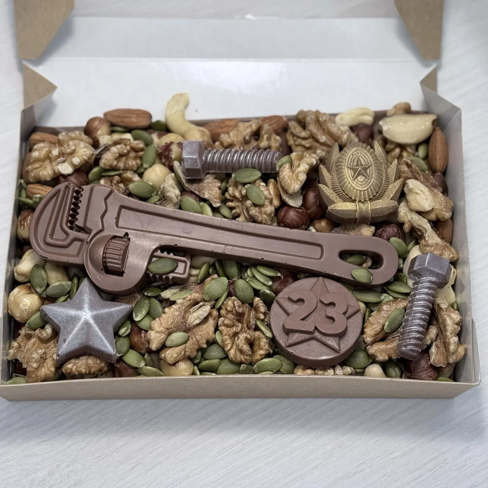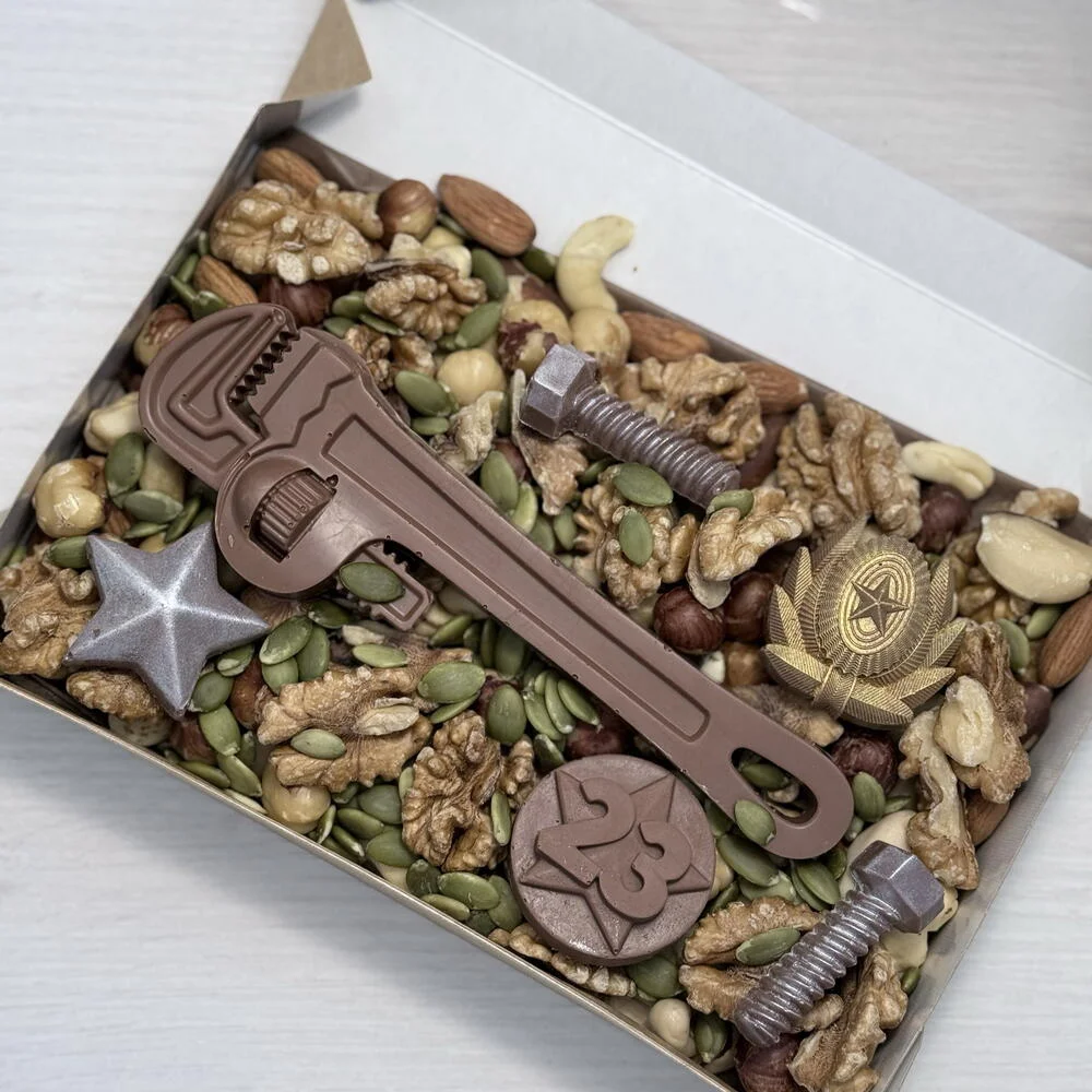 Ищете подарок, который действительно удивит и порадует? Этот изысканный набор создан для сильных, целеустремлённых и достойных мужчин и станет идеальным сюрпризом на 23 февраля и другие мужские праздники. В одной коробке собраны отборные орехи и бельгийский шоколад ручной работы — сочетание, которое выглядит статусно и дарит настоящие гастрономические впечатления.