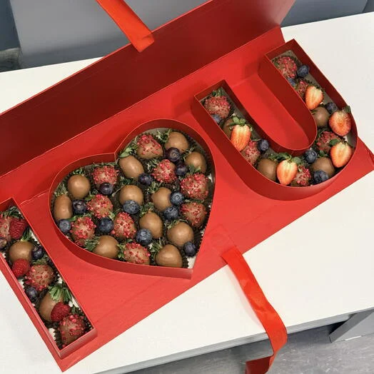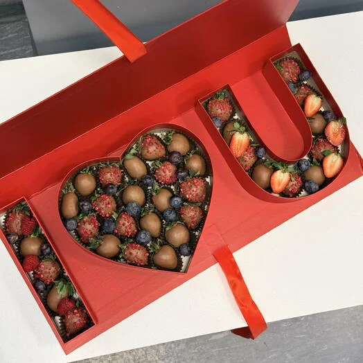Клубника в шоколаде в коробке «I LOVE U» — это изысканный подарок, сочетающий нежность ягод и богатство шоколадного вкуса. Каждая спелая клубника окутана тонким слоем бельгийского шоколада, создавая гармоничный дуэт сладости и лёгкой кислинки. Декоративные элементы, такие как cублимированная малина, цветы из шоколада, добавляют текстурное разнообразие и эстетическую привлекательность.