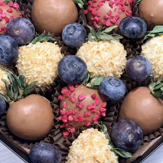 Клубника в шоколаде - это не просто десерт, это язык чувств, который говорит громче любых слов. Красный цвет сочной ягоды и благородная роскошь премиум шоколада создают идеальное сочетание, символизирующее страсть и нежность.