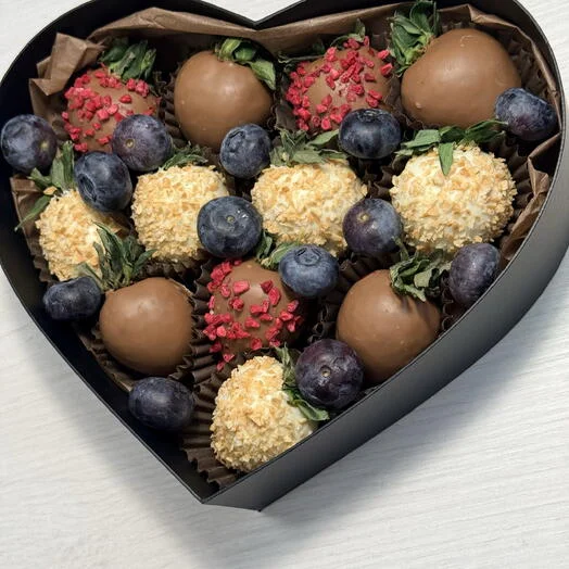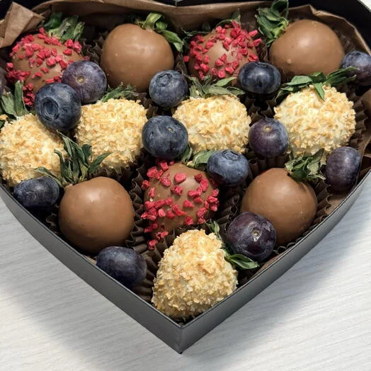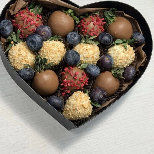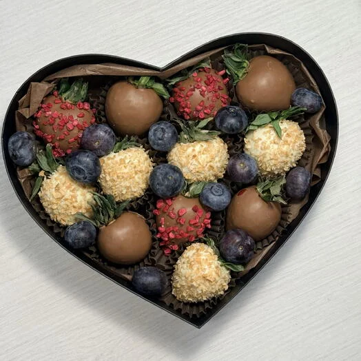 В наборе «Сердце» количество ягод от 10 до 14 шт в зависимости от калибра ягоды.