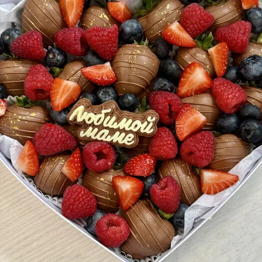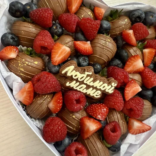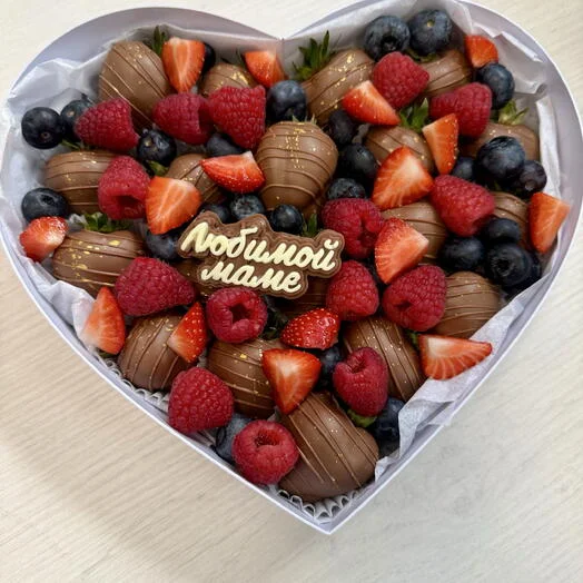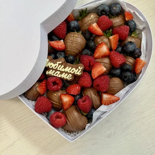 Представьте, как светятся глаза вашей мамы, когда она откроет пакет, а там коробочка в виде сердца. Интрига дополняется не прозрачной крышкой. Развязав атласный бант, открывает крышку коробки с трепетным биением сердца ииии она видит десерт , достойный королевы. Счастье и радость с горящими глазами.