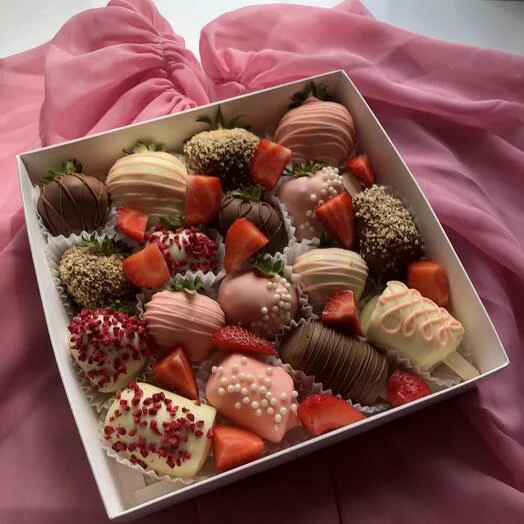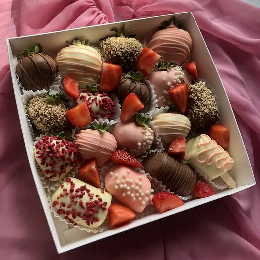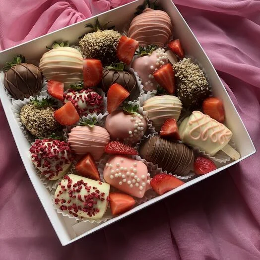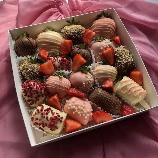 ✨ Подарите себе и близким незабываемые моменты наслаждения! Сочетание сочной клубники и нежных бананов в благородном бельгийском шоколаде – это настоящий праздник вкуса!