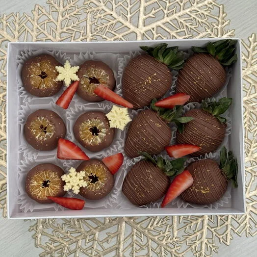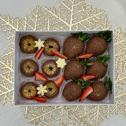 Представьте: сочные ягоды и миниатюрные мандаринки, окутанные благородной глазурью из премиального бельгийского шоколада. Это не просто десерт — это волшебный микс вкусов, который превратит любой праздничный стол в сказку.