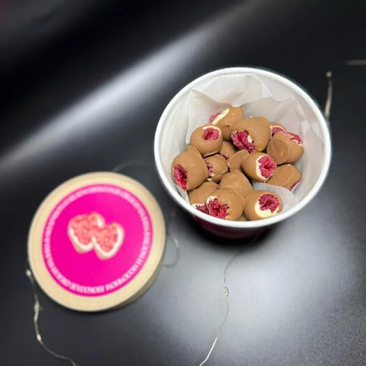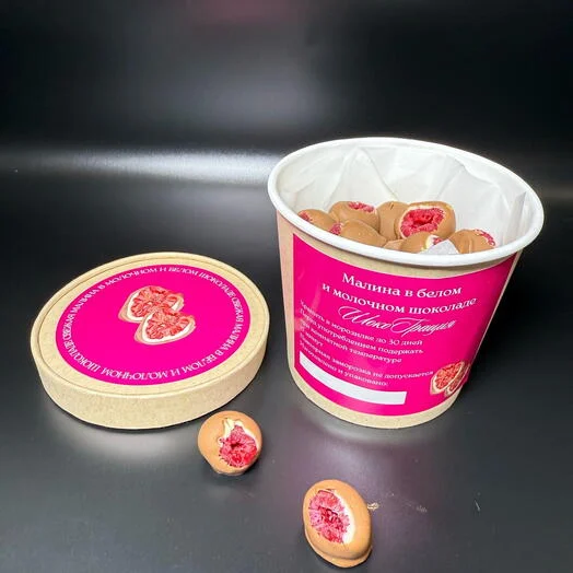 Каждый набор упакован в удобный стакан, что позволяет преподнести малину в качестве подарка!