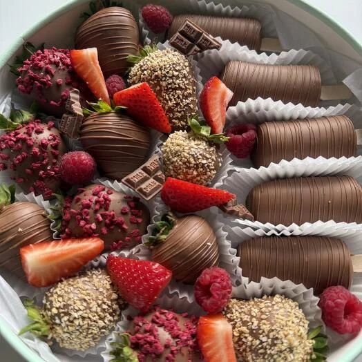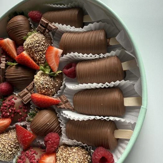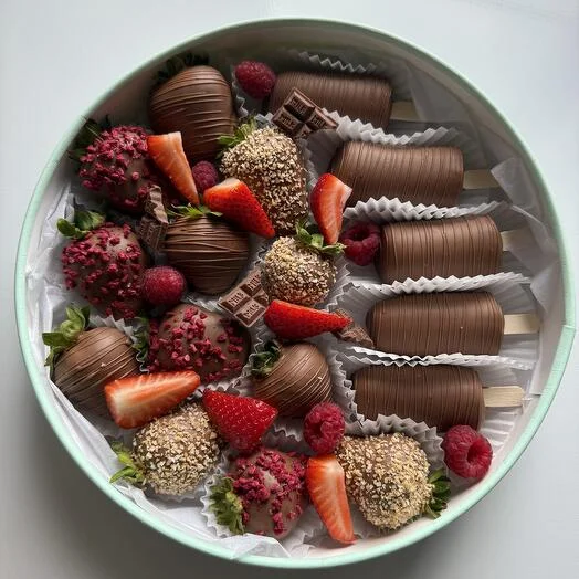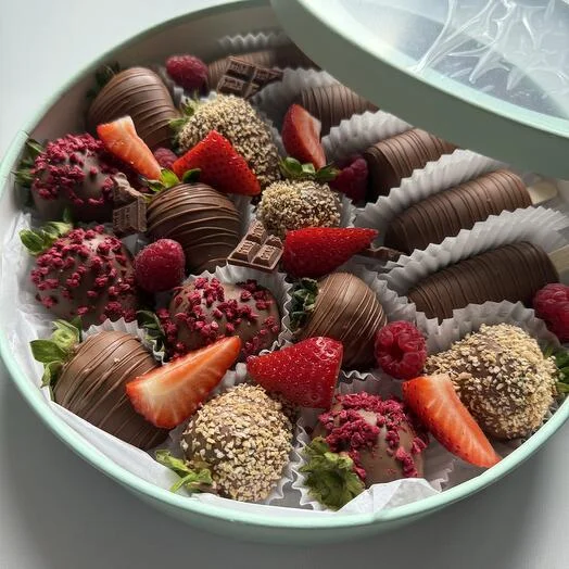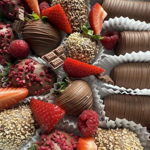 Побалуйте себя и близких неповторимым сочетанием свежайших фруктов и премиального молочного шоколада!